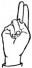 На ћирилици написано БУДИМИР КОМЛЕНИЋ састоји се из 15 слова [?]. Исписано ћириличном једноручном азбуком за глувонеме: